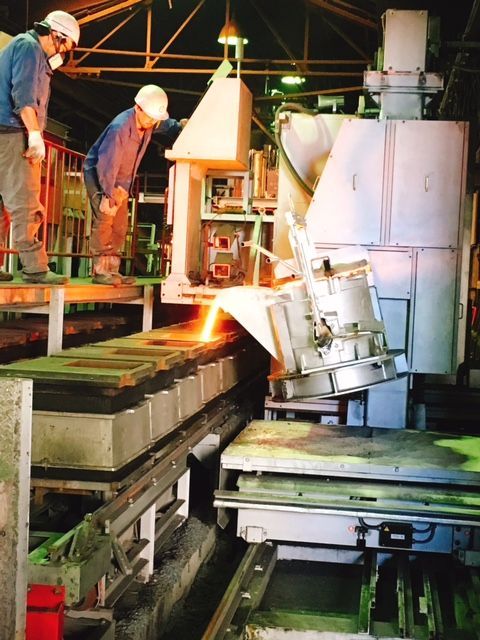 溶かした高熱の鉄を鍋の型に流し込んでいきます。