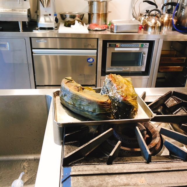 こちらを塩釜に包んでオーブンへ。