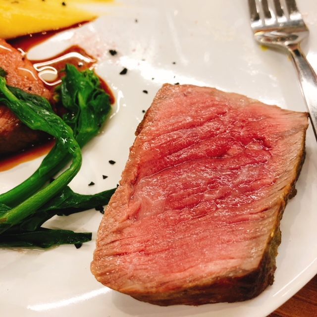 本日のメイン。牛肉についてはお塩の振り方から教わりました。