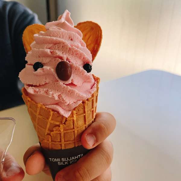 ソフトクリームの種類を選び、そこに顔をつけてくれます