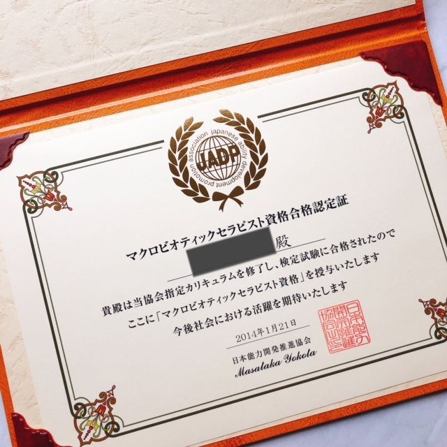 キャリカレさんのマクロビオティックセラピスト資格取得講座を受講しました。