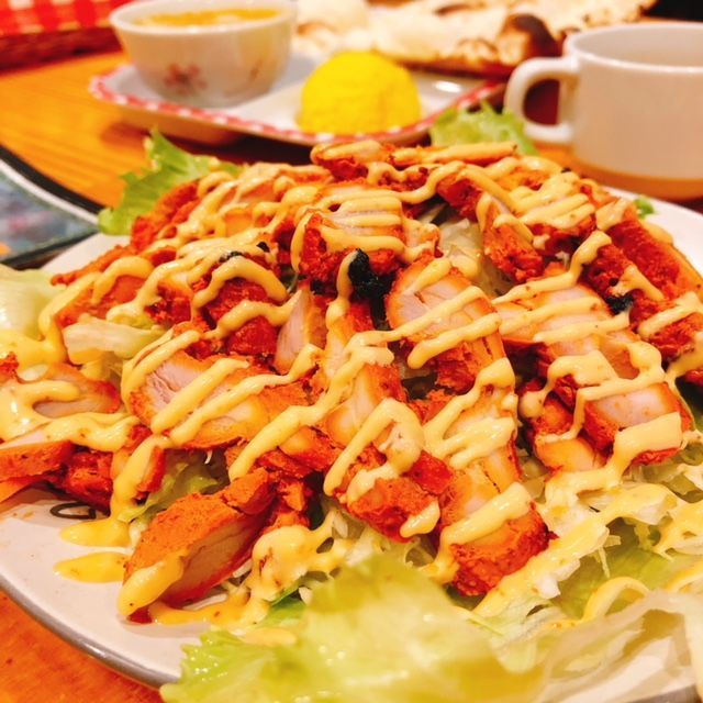 タンドリーチキンがトッピングされたキャベツメインのサラダです。