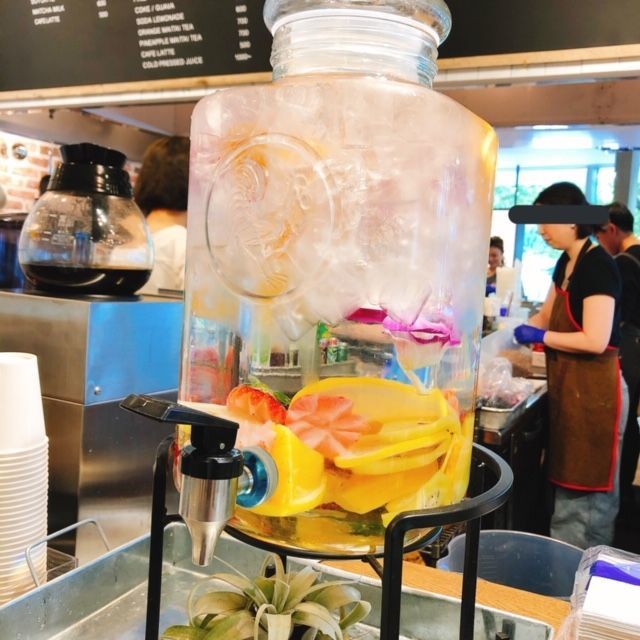 入り口にはフルーツたっぷりのデトックスウォーターがお出迎え
